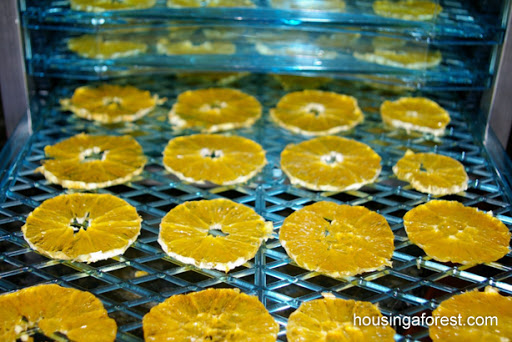 Peel oranges and thinly slice with a Mandolin or knife. Arrange slices on dehydrator trays. You may be surprised by how delightful dehydrated oranges taste. They also make great Christmas decorations.