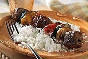 - 8 servings, 1 kabob and 3/4 cup rice each