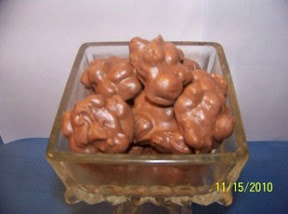NOTE: This candy is made best by following the recipe to the letter. Make other variations and changes at your own risk, [for example, using pecans or almonds in place of peanuts; white chocolate chips instead of almond bark, etc.] as this is the voice of experience speaking. Please take into consideration that it may alter the quality of the finished product. Thank you and LOL!