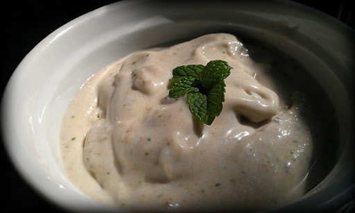 3.Divide the ice-cream between 4 dessert plates and garnish with mint.