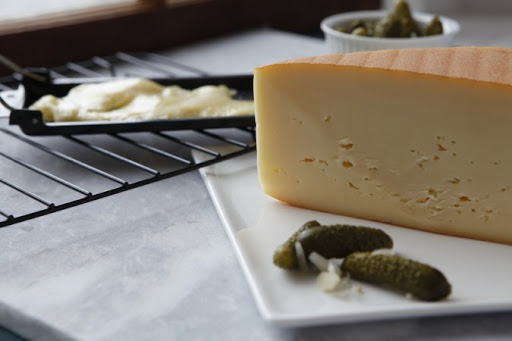 - Suggested accompaniments: steamed new or yukon gold potatoes, cornichons, pickled onions, roasted peppers, and hearty baguette. Pumpernickel is also a delicious, albeit a bit untraditional, complement to the nutty flavors of raclette