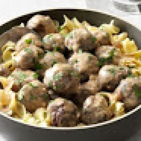 Meanwhile, cook noodles according to package directions. Drain; toss with butter. Serve with meatball mixture; sprinkle with parsley.