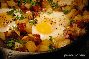 Slide skillet into hot oven and bake for 12 – 15 minutes or until whites are set (longer if you do not want runny yolks). Tip: The residual heat of the skillet and the hash will continue to cook the eggs after the pan is removed from the oven, you might want to pull them before they look completely done to avoid overcooking.