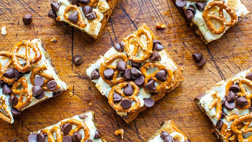 Pretzel S’mores Chocolate Chip Cookie Bars