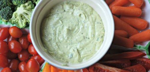 In a food processor, combine avocado, lemon juice, parsley, basil and garlic. Pulse until smooth. Add yogurt and mayo and mix until dip is well blended and creamy. Add salt and pepper to taste.