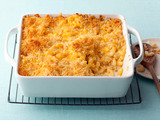 Temper in the egg. Stir in 3/4 of the cheese. Season with salt and pepper. Fold the macaroni into the mix and pour into a 2-quart casserole dish. Top with remaining cheese.