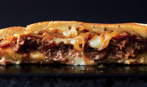 Gently mix onion, beef, ketchup, garlic powder, salt, and pepper, in a medium bowl. Divide into 4 portions and press each between 2 pieces of parchment or waxed paper until about ¼” thick (you want them roughly the same dimensions as the bread you're using.)