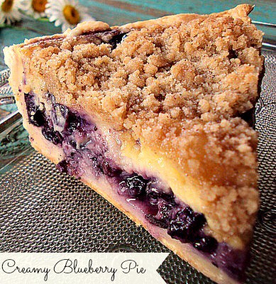 This Creamy Blueberry Pie is a twist on the classic blueberry pie with a creamy custard filling and topped with a crunchy streusel.