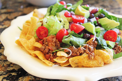 6. Gather your topping ingredients while the meat is simmering on the stove top. You’ll want some great looking tortilla chips. Yes, I see that the chips before you are Fritos. I couldn’t find a single tortilla chip in my entire house, dad blast it. I wanted to show you some fabulous tortilla chips, but the thought of running back to the store for the second time in the same 60 minutes made me break out in a cold sweat.