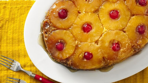 1. Spray 6-quart slow cooker with cooking spray. In small bowl, mix brown sugar and melted butter; spread evenly in bottom of slow cooker. Arrange pineapple slices on brown sugar mixture, cutting as needed to fit in one layer. Place cherry in center of each slice and around slices, as needed.