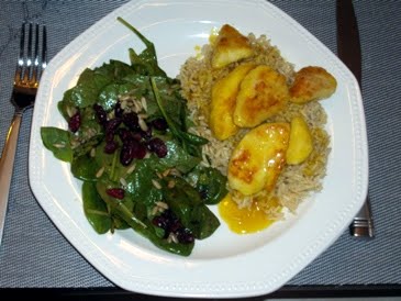 4. Mix together chicken stock, honey, orange juice and lemon juice. Blend in cornstarch and curry powder. Pour into clean skillet; bring to a boil, stirring as it thickens.