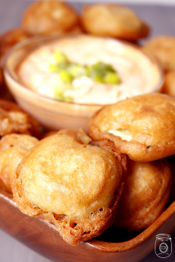 Beer Battered Pickles with Sriracha Dipping Sauce