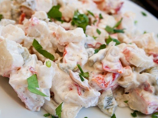 In a medium bowl, whisk together the mayonnaise, sugar, salt, vinegar and milk. Add the crabmeat, green onion, celery and green pepper and stir until evenly combined. Refrigerate until ready to use.