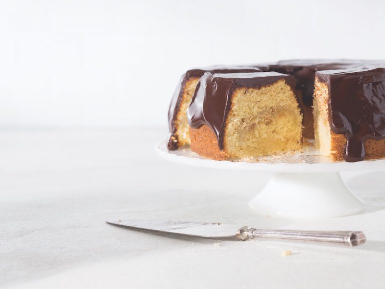 With a rich ganache, pillowy yellow cake, and luscious vanilla cream cheese filling, our tube pan twist on Boston’s most famous dessert literally turns this classic upside-down. We flip the cake as it cools, creating a flat top for our shiny ganache glaze.