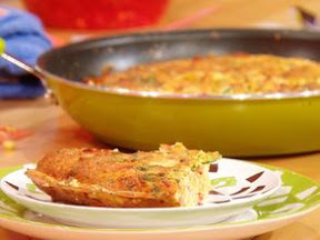 In a bowl, beat the eggs with the hot sauce; season with salt and pepper, Pour the egg mixture over the ham mixture. Scatter the cheese on the top. Cook until the eggs are just set, 3-5 minutes. Transfer the frittata to the oven and bake until puffed, 12-15 minutes.