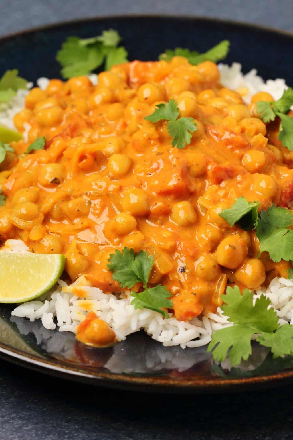 This delicious vegan chickpea curry is creamy and perfectly spiced. It’s also ready in less than 30-minutes and makes a wonderful weeknight meal.
