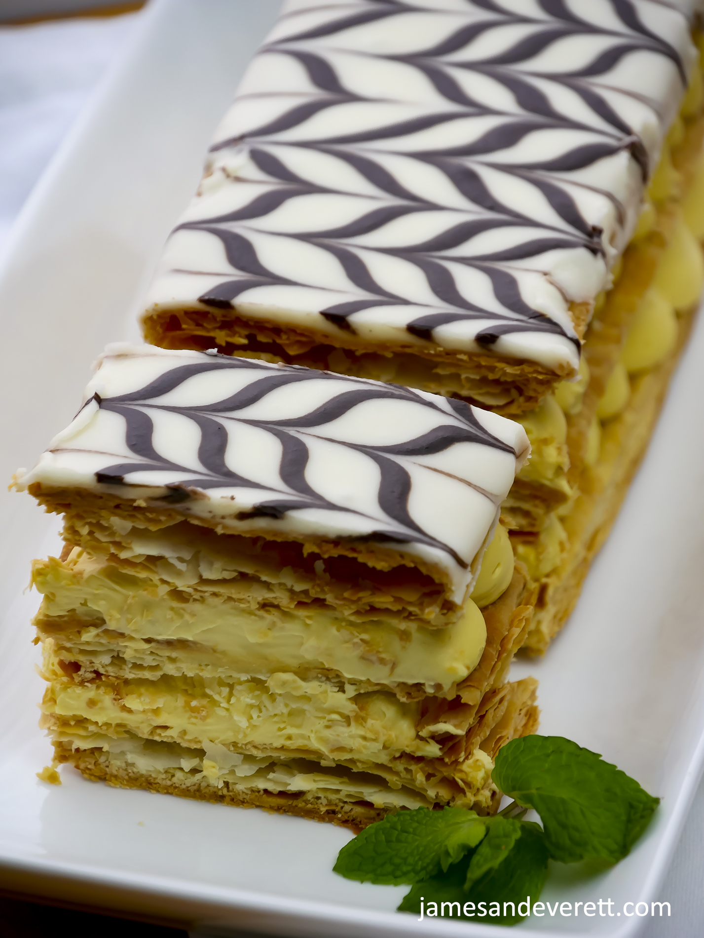 Easy recipe for a classic French dessert. Almond flavored pastry creme sandwiched between layers of flaky pastry crust, topped with a fondant icing. Stunning to behold and even tastier to enjoy.