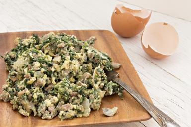 4. When the mushrooms are mostly cooked, add the spinach and continue until it is all hot.