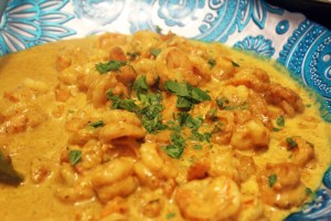 When you’re nearly ready to eat, turn the sauce up to a gentle bubble and add in the shrimp. Stir them around for a few minutes – they’ll take 5-10 minutes to cook through depending on how hot the sauce is.