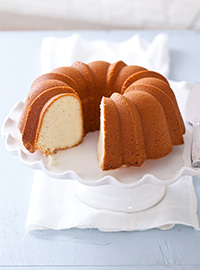 In this cake, cream cheese adds richness and tangy flavor to classic, buttery pound cake. We let the pure flavors of eggs and butter take center stage, adding only a few teaspoons of vanilla and a moderate amount of sugar. For a velvety texture, extra yolks and lower-protein cake flour were key. And to achieve a tight, fine crumb, we left the leavener out all together. Finally, a low oven may take a little longer, but it produces a golden-brown crust and a moist, tender interior.