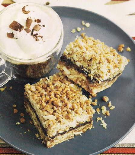 7. Lift foil from pan; place on a cutting board. Peel foil down from sides leaving in place beneath; very lightly dust with icing sugar in a small sieve. Using a large chef's knife, cut into squares. Use a spatula to transfer to serving plates, leaving foil behind. Covered squares keep well at room temperature for 2 to 3 days and freeze beautifully.