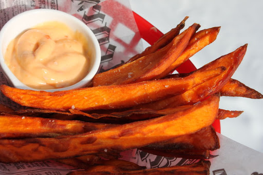 Cut potatoes plank style - ¼" thick by ½" wide. Place in a large bowl of cold ice water and chill in fridge for 30 minutes, changing water 3 times. Drain, pat completely dry.