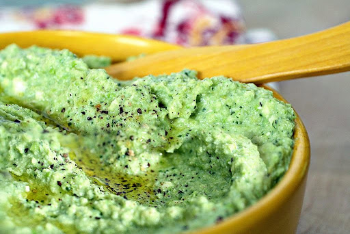 Bring a medium pot of salted water to a boil. Add peas and edamame, and cook 3-4 minutes, until just tender. Drain, and transfer to a food processor. Add garlic, mint, cashew ricotta, lemon, salt, pepper, olive oil and 4 T water. Puree 2-3 minutes until mixture is smooth. Add additional 2 T water, if necessary to thin out. Season to taste with salt and pepper (I added 1/2 t more salt). Transfer to a serving bowl or refrigerate for up to 24 hours.