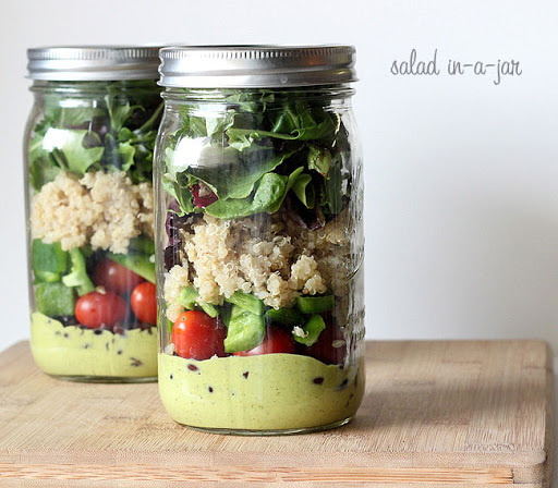 Quinoa - Quiona, Black Bean and Tomato Salad-in-a-Jar with Avocado Cilantro Lime Dressing