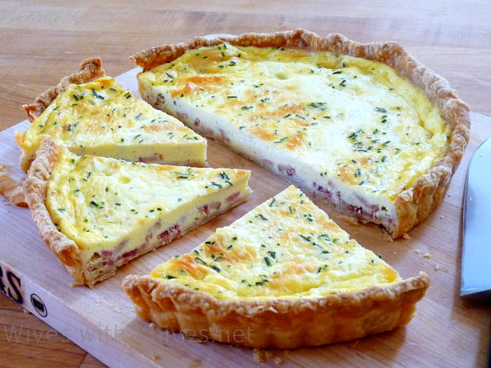 Place cooled pastry on baking sheet. Sprinkle bacon on bottom. Gently ladle egg mixture over.