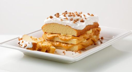 Slice bananas. Cut cake into 3 horizontal layers; stack on plate, filling layers with caramel sauce and bananas.