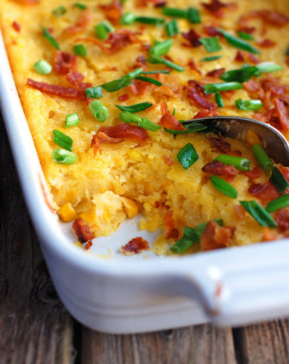 Bake at 350 for 35 minutes. Sprinkle on toppings and continue baking for 10 more minutes (unless using scallions – sprinkle those after removing from oven). Corn is done when the middle is set.