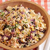 Add all remaining ingredients except chicken and cilantro to dressing; toss until mixed well. Divide vegetable mixture evenly among 6 plates or large shallow bowls. Top each serving with 1/2 cup chicken; sprinkle with cilantro.