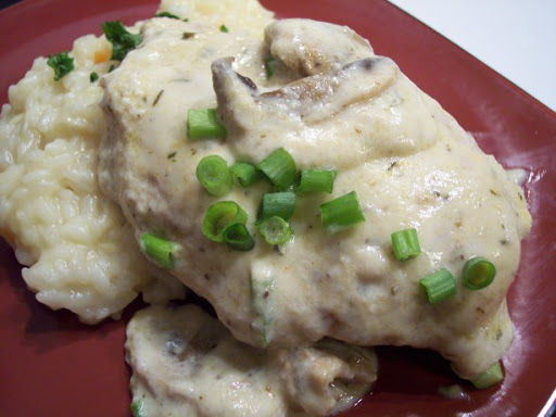 Allow to simmer for approximately 30 minutes. 15 minutes prior to serving remove chicken, stir sour cream into sauce and blend well. Replace the chicken into the sauce and allow to simmer. (I usually put it in the oven at 325°F at this point).