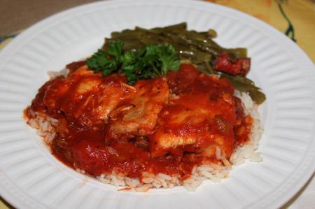 Add remaining ingredients and bring to a boil. Lower heat and simmer on low for 1 to 2 hours adding water as needed to keep from sticking. It should be a medium consistency. Cook until chicken is done and falling off the bone about 1 hour.