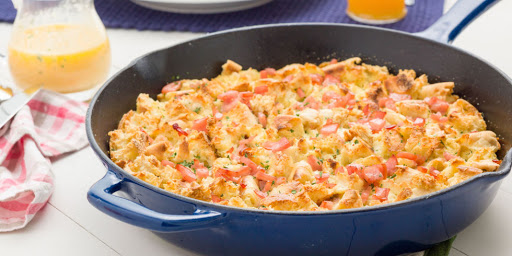 When ready to bake, preheat oven to 350 degrees F. Bake until egg is cooked through and top is golden, 40 to 45 minutes. (Cover with foil if getting too brown.)