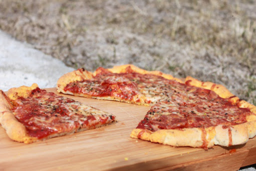 Remove from oven, then spread on your sauce and add toppings. Then reduce oven temperature to 400°F, and continue baking for another 15-25 minutes (depending on thickness) or until top is nicely browned.