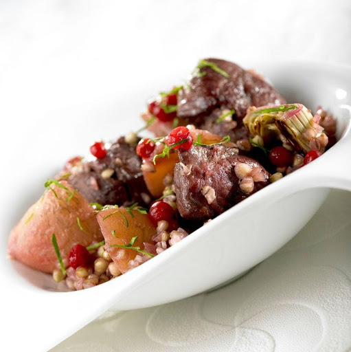 Cut the ostrich steaks into 5 or 6 cubes and add to the ActiFry, along with the drained marinated artichoke hearts, the wine and the cranberries. Season and cook for another 5 to 8 minutes, depending on how cooked you like it.