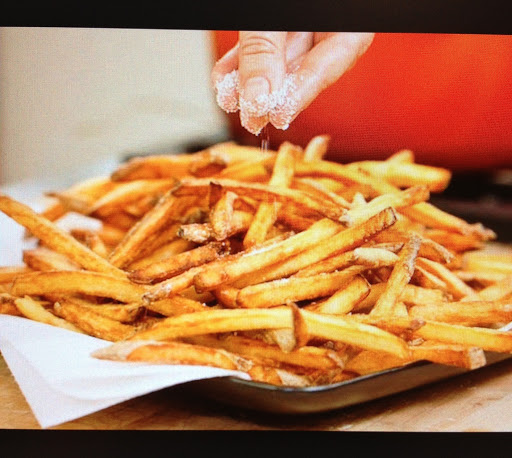 The oil should fill the pot at least one third of the way, or if using an electric fryer, add oil according to the manufacturer’s instructions. Heat the oil to 250 degrees F. Fry the potatoes in the oil in batches for five to eight minutes. (Until they are soft but still very pale in color.) Remove with a slotted spoon, cool on paper towels. The fries can be prepared up to this stage several hours in advance and refrigerated.