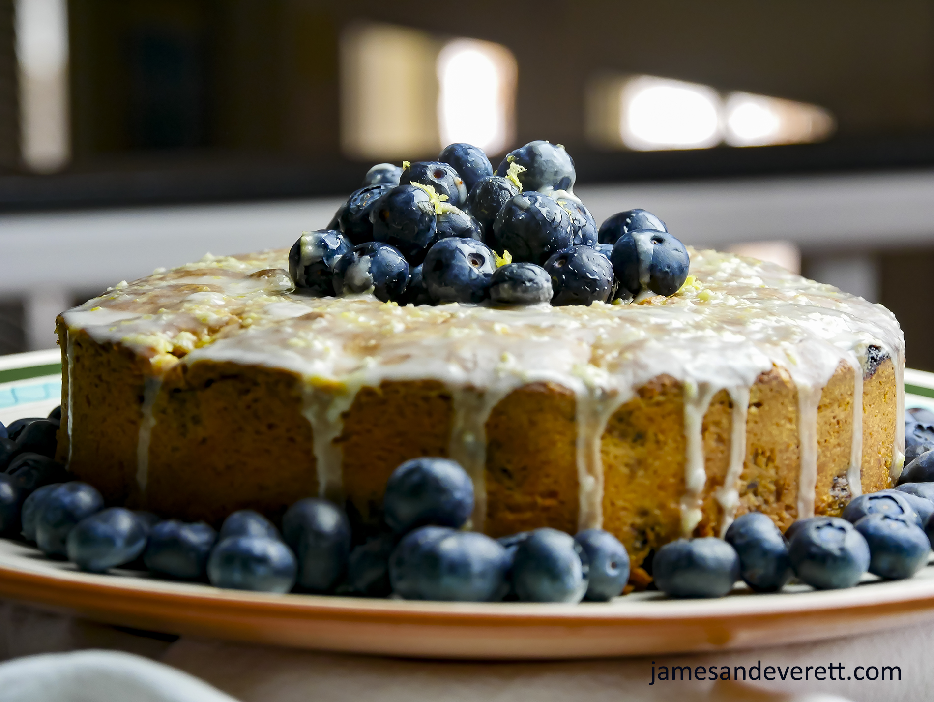 Naturally sweet blueberries are tossed with lemon zest and baked with almond flour to make this incredibly tender cake. Covered in an almond glaze and topped with a mountain of plump berries this cake is bursting with fresh flavors.