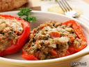 Add 1/4 cup water to baking dish, cover with foil, and bake 20 minutes. Remove dish from oven and carefully remove foil; return dish to oven and bake for an additional 5 to 7 minutes, or until peppers are tender and the filling is heated through. Serve immediately.