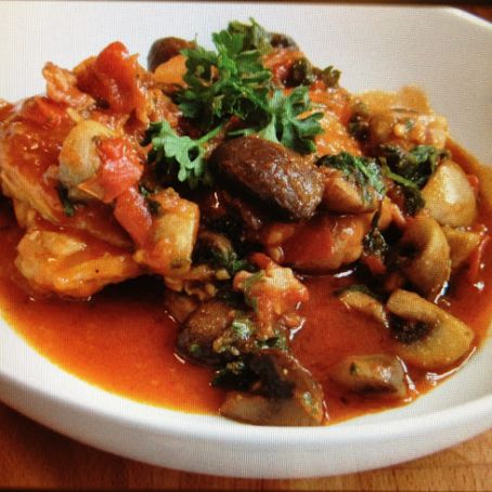 6. When sauce is properly reduced, whisk in butter, one piece at a time, until melted and incorporated. Add parsley and tarragon and adjust seasoning with salt and pepper. Spoon sauce over chicken and serve immediately.