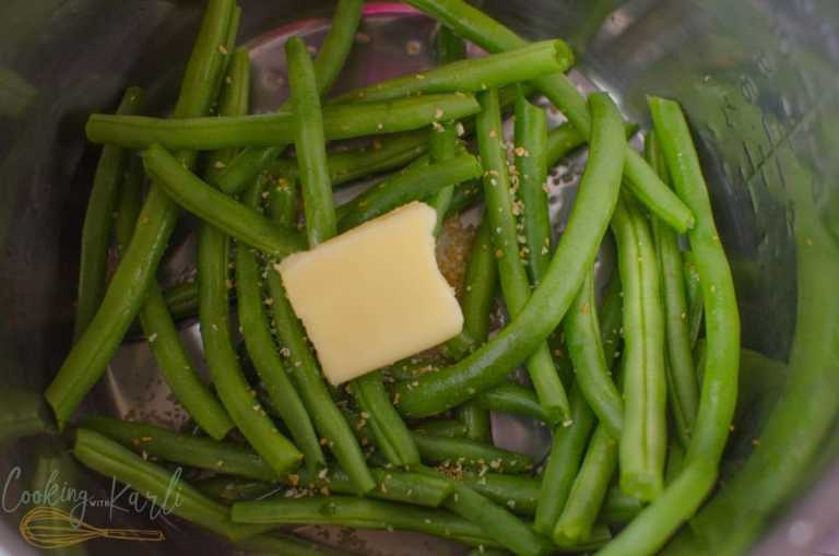 Add the water, garlic, salt and green beans to the Instant Pot. Place the butter on top of the green beans. Pressure cook on manual HIGH for 0 (Z-E-R-O) minutes. Quick Release.