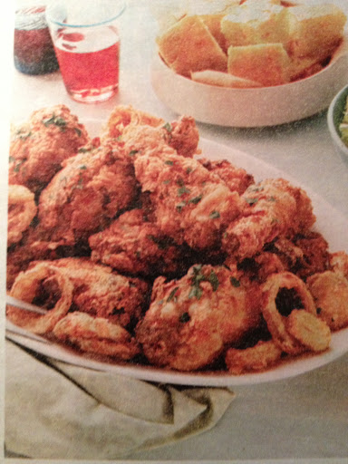 8. Drain chicen and onion rings on a wire rack. Sprinkle with parsley.