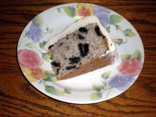 6. To assemble the cake, put a cake layer on a serving plate and top with one-third of the remaining cookie filling, spreading filling evenly over layer. Add a second layer of cake and spread with another one-third portion of the cookie filling. Add another cake layer and spread with remaining cookie filling. Top with remaining cake layer.