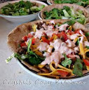 SALAD Layer ingredients in the following order; lettuce, beef, corn, black beans, cheese, sour cream, salsa, sour cream.