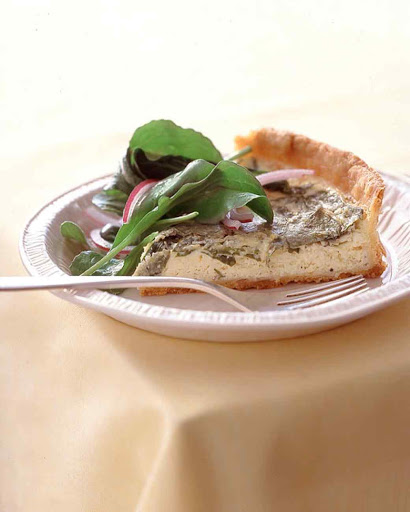 Whisk ricotta, milk, eggs, zest, salt, and pepper in a large bowl. Stir in arugula. Pour mixture into tart shell; bake until puffed and pale golden brown, about 45 minutes. Let cool at least 30 minutes before serving. Serve with arugula salad.