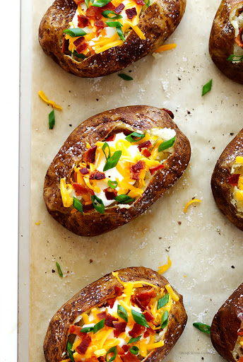 Return to oven and cook for an additional 20 minutes, turning the potato halfway through (after 10 minutes) so that it can bake evenly on all sides.  Check for doneness by squeezing the potato (using an oven mitt since it's a hot potato!).  If the insides are nice and soft and give under pressure, remove the potato from the oven.  Otherwise, continue cooking in 5-minute increments until the potato is done.