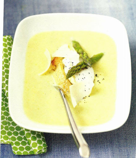 Cream of Asparagus Soup with Parmesan and Poached Eggs