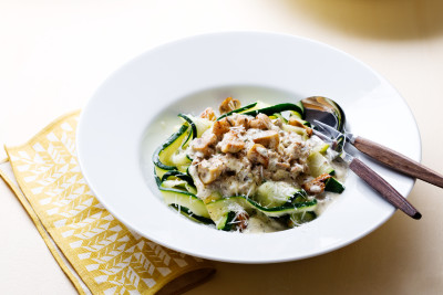 Add sour cream and let boil, but lower the heat and let simmer for 10 minutes. Serve with zucchini fettuccine or cauliflower rice.
