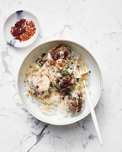 Yogurt turns surprisingly velvety and decadent when cooked with cornstarch and egg yolks. Serve it over meatballs seasoned with a combo of cinnamon, cumin, and cilantro--and you've got an updated Turkish kofta. Top it with red-pepper flakes and sumac (a lemony Middle Eastern spice) for an energetic lift.